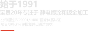 青岛宝灵表面处理有限公司,公司占地面积24254平方米,固定资产8000多万元,主要经营钣金静电喷涂以及加工业务,有三条大型的静电喷涂生产线,工艺设备先进,能够满足大型部件的喷涂,以及能保质保量的满足多种颜色同时生产,年喷涂能力700多万平方米;可进行钣金成型、喷涂生产、成品装配到物流配送的一站式服务;公司通过了ISO9001/14001的国家体系认证,项目取得了环评批复并已通过了验收,每年都会委托第三方进行环境检测和职业卫生危害因素的检测,检测的结果都会到相应的政府部门进行备案;公司建有污水处理站,所有的废水都经污水处理站处理以后达标排放,废渣等危废每年委托第三方进行回收处置。公司本着“客户至上、技术争先、团结协作、求真务实”的公司理念,不断学习,不断完善,积极创新,实现更大突破。